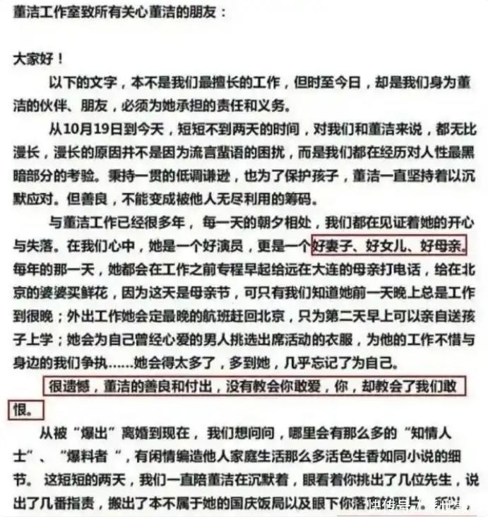 2012年10月20日凌晨,董洁工作室突然发布千余字离婚声明。