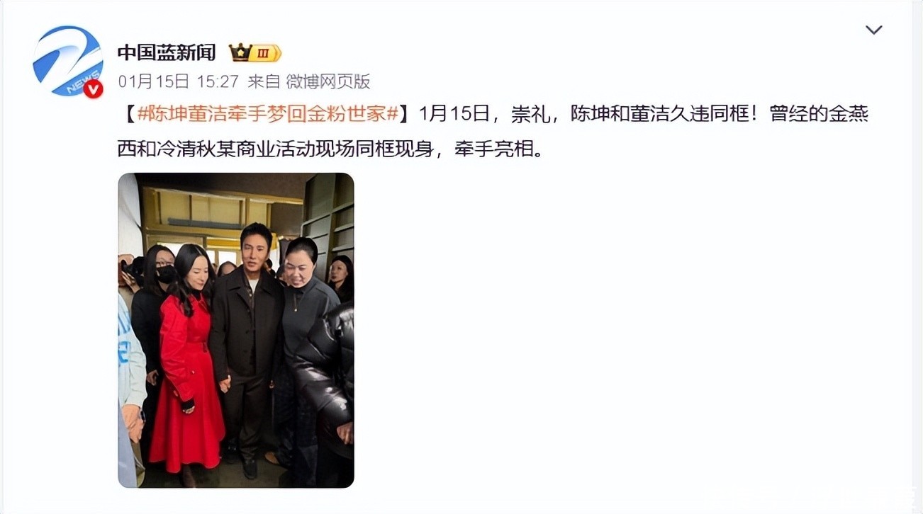 2026年1月15日,陈坤与董洁在河北崇礼出席活动时自然牵手。