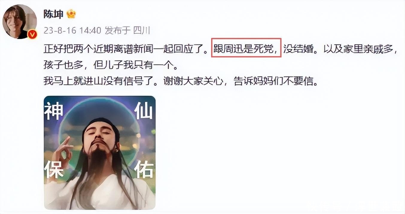 陈坤当天即通过工作室严正声明:“我们只是相伴二十载的挚友,是家人,不是恋人。”